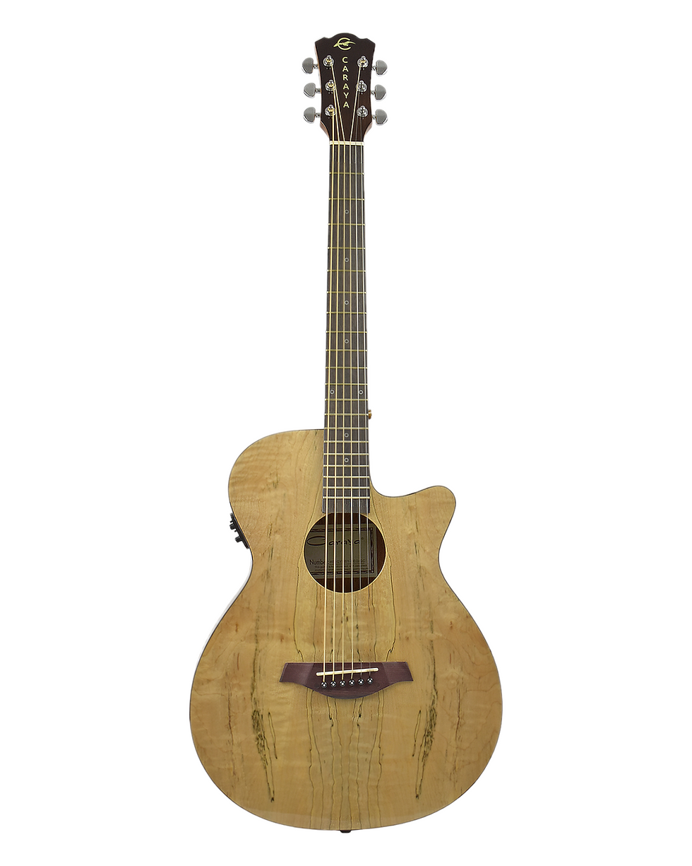 Caraya HSGYPSYCEQGC Spalted Spruce Built-In Pickups/Tuner OM Cutaway Acoustic Gu
