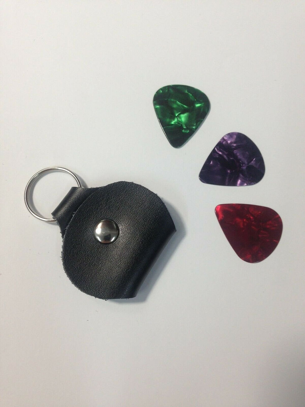 Haze PH22 Leather Pick-Holder + 3 Guitar Picks, Key Ring, Black